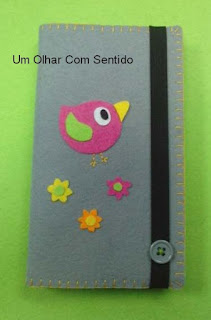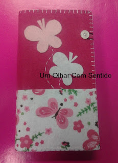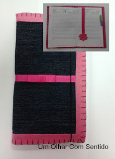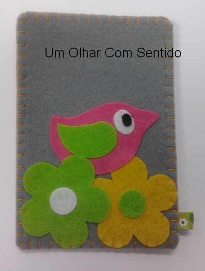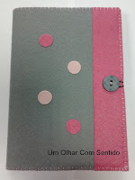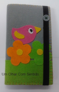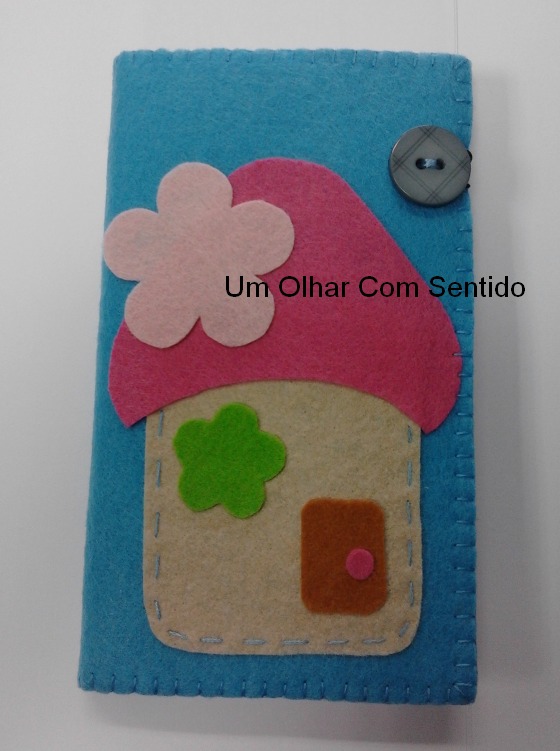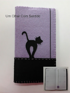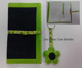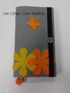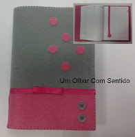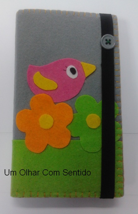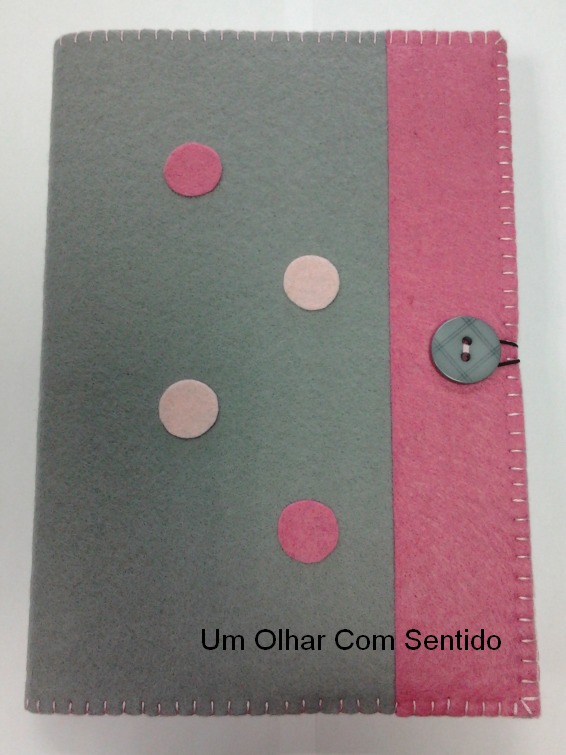 Com capa em Feltro, marcador de paguina e elastico para manter fechada...